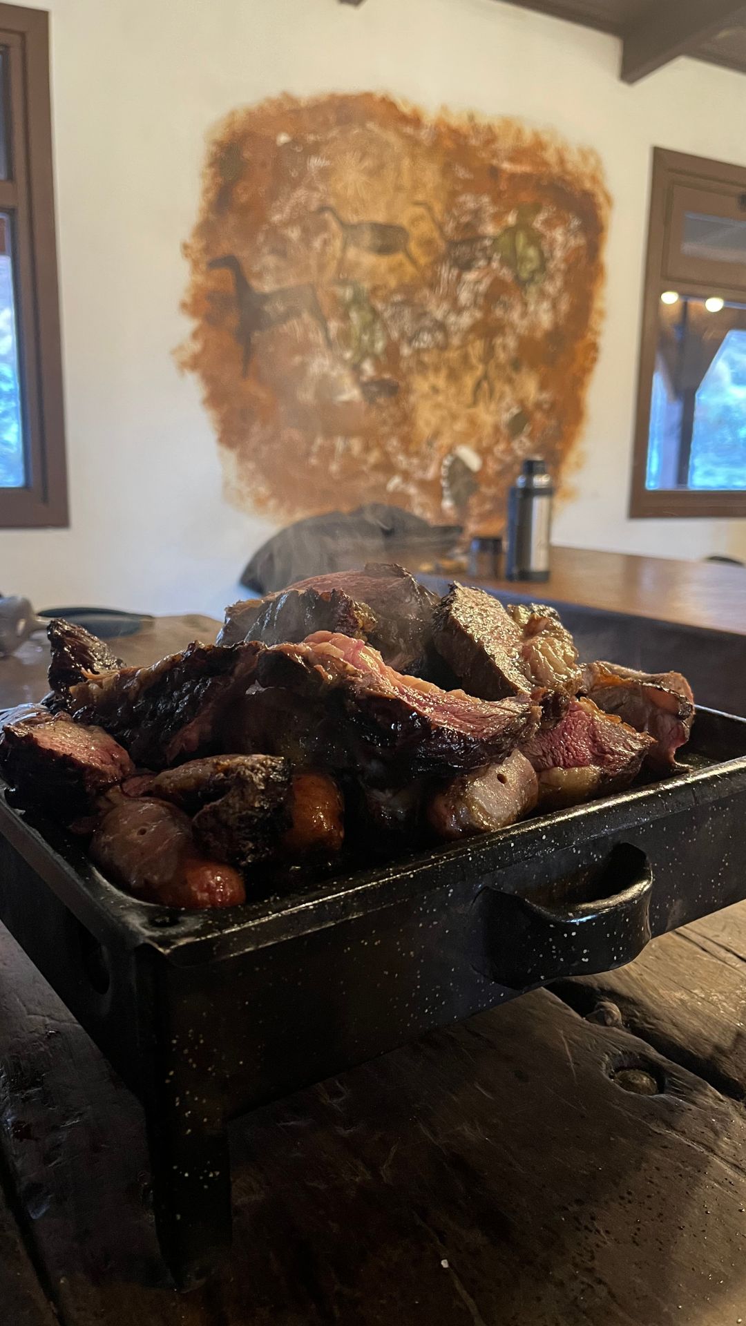 Al regresar, disfrutaremos de un asado al estilo campestre, con ensaladas frescas y panqueques con dulce de leche de postre. Todo acompañado de bebidas incluidas (vino, gaseosa y agua).