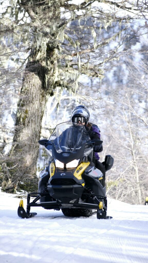 • Comienza el recorrido guiado en moto de nieve, de aproximadamente 30 minutos, atravesando bosques nevados.
