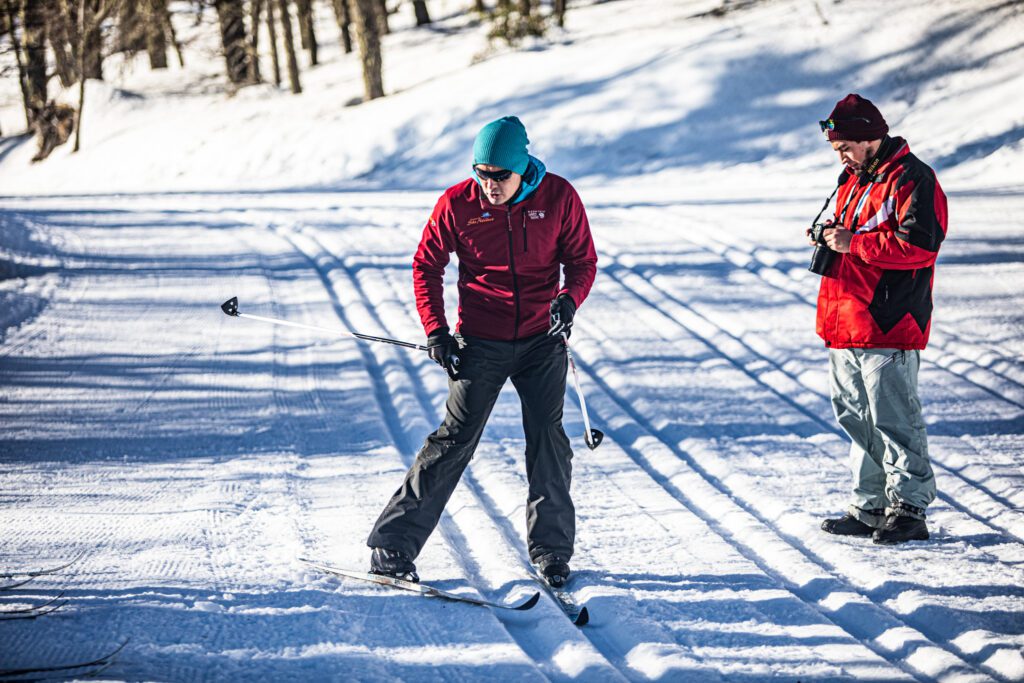Su gran diferencia con el ski alpino (como el que se practica en el Cerro Catedral, por ejemplo) es que no se practica en descensos pronunciados, sino en terrenos llanos u ondulados, lo que lo hace menos peligroso y más fácil de aprender. Es por tanto una buena manera de tener contacto con la nieve para aquellos que nunca han realizado actividades invernales y para toda la familia!